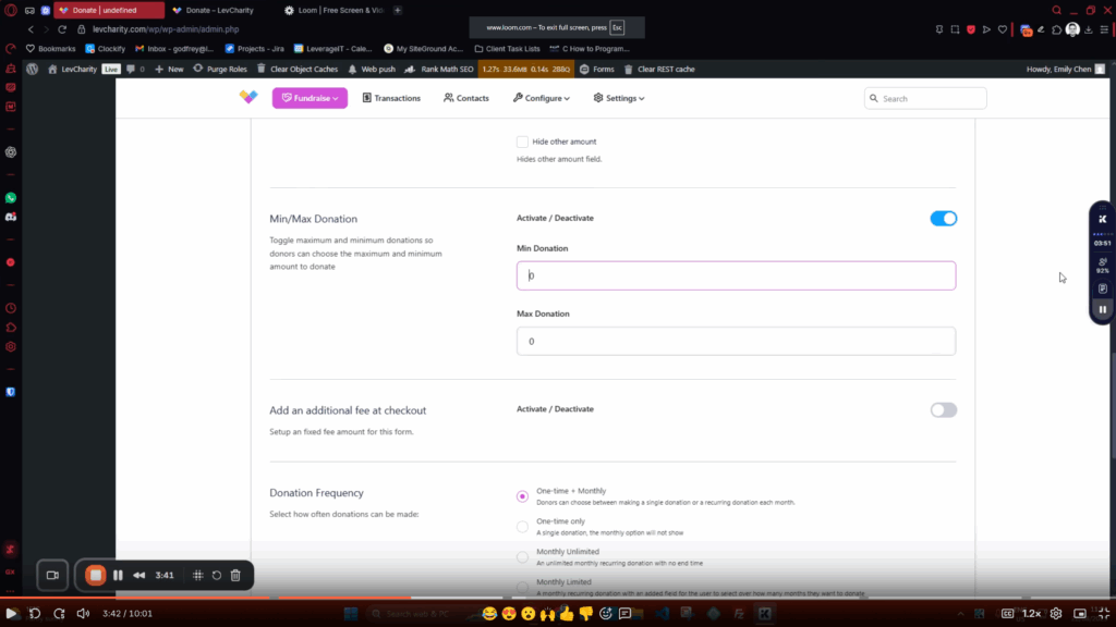 - Activate the min/max donation feature if you want to restrict donation amounts.